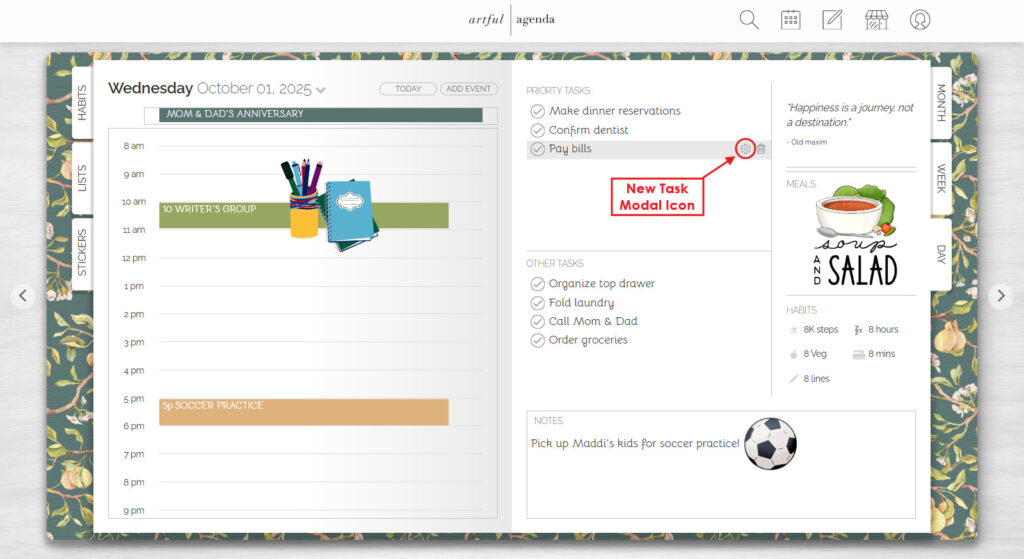 At Artful Agenda, our goal is to make digital planning both delightful and effective. With the new alarms for tasks, the redesigned task modal, and our cozy Fall 2025 bundle, it’s easier than ever to plan beautifully and live artfully.