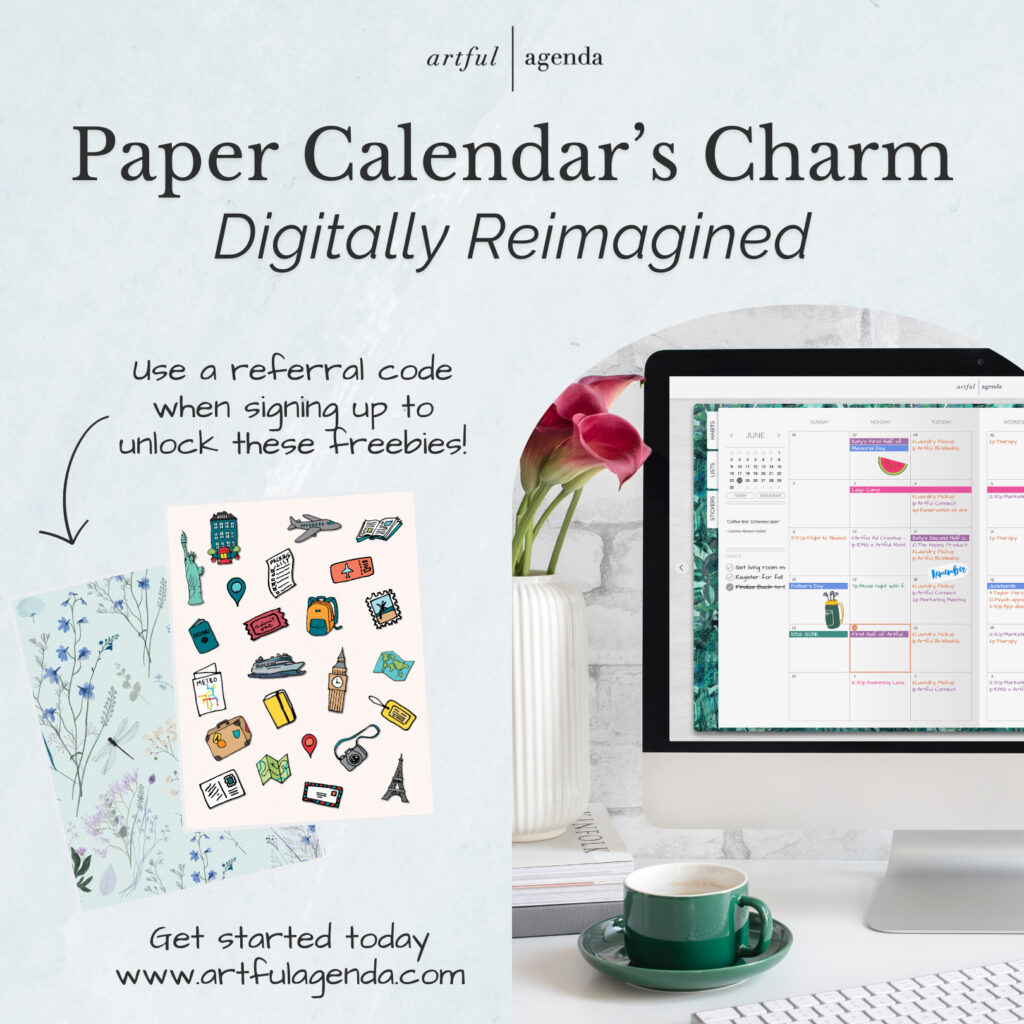 Artful Agenda’s Referral Program is a win-win for everyone! When you share your love of planning with friends and family, you’ll earn 10% of their first payment as a thank you—and they’ll unlock a premium cover design and exclusive sticker pack to personalize their planning experience. It’s a simple, rewarding way to spread the joy of stylish organization while earning perks for yourself. There’s no limit to how many friends you can refer, so the more you share, the more you earn!